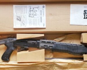 Introduced in Italy in 1979 with dual action, semi-automatic and pump mechanism. Blade front and peep rear sights, with a full length magazine tube, stamped heat shield, standard frame markings, ribbed forearm, pistol grip and folding metal stock with swiveling forearm hook. Franchi spas 12 Threaded for external choke tubes with a thread protector.